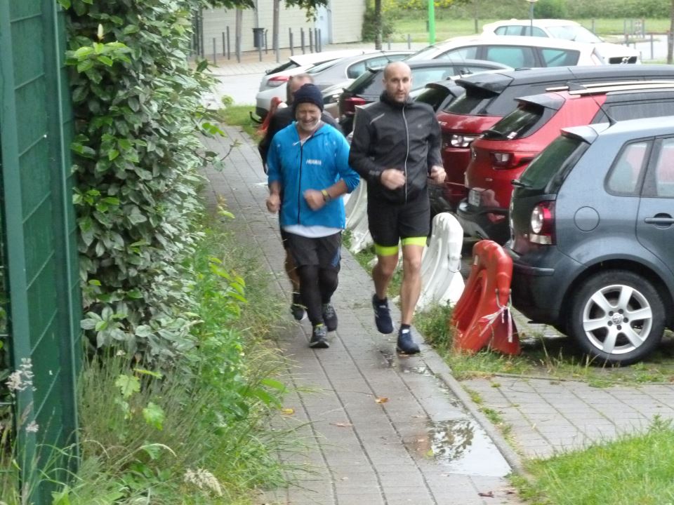 Les mouettes qui nichent sur le toit du gymnase, ne font pas trop de rase-motte ce matin, mais notre coureur a du mal à démarrer…